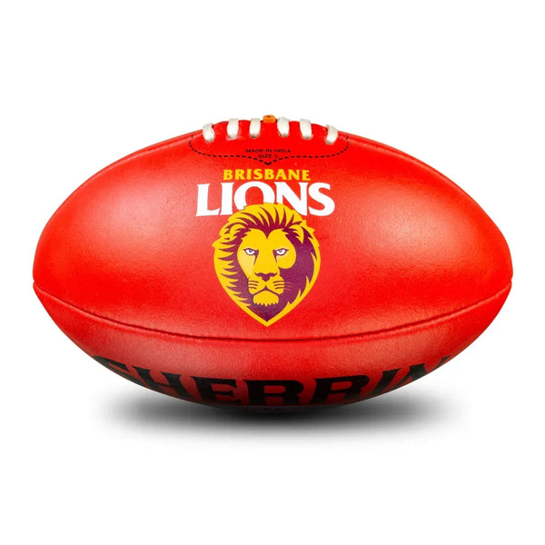 The AFL Team Club Leather Football is a full grain leather available in size 5 featuring the Brisbane Lions logo and the famous Sherrin AFL panelling you see in game. This full-grain leather makes for a durable and reliable junior training football. Ideal for community games or kick-to-kick at the park with friends. This full grain leather ball is only suitable for grass surfaces only.