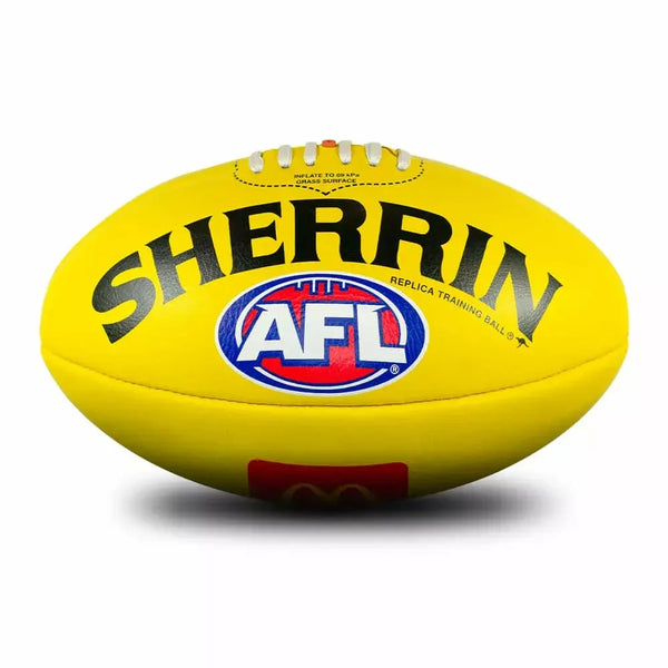 The AFL Replica Training ball is a full-grain leather footy designed for the training ground. Made from durable imported leather the AFL Replica is designed to stand up to those countless training drills and kick-to-kick sessions, performing consistently each and every time.