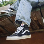 The Legendary High-Top that’s been Changing the Game Since 1978. High-tops changed the sneaker game, and the Vans Style #38 was at the forefront of the revolution. Now beloved as the Sk8-Hi sneaker, this legendary high-top shoe blazed trails from the beginning. The sturdy suede and canvas uppers allow for maximum attitude. The foundation? Say hello to reinforced toe caps, supportive padded collars, and our signature rubber waffle outsoles. This classic Sk8-Hi shoe is as innovative today as it was in 1978, and every bit as groundbreaking. Tapping into our heritage, the Black & White Sk8-Hi has it all.