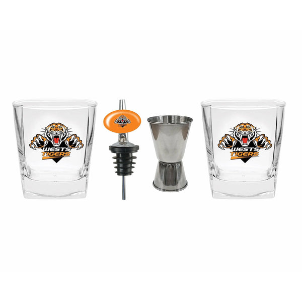 NRL SET OF 2 SPIRIT GLASSES JIGGER & POURER PACK