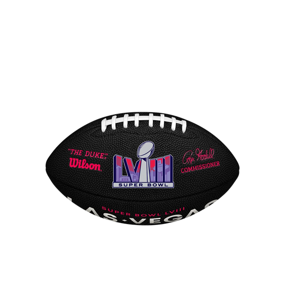 The Super Bowl LVIII Soft Touch Football is designed for playmakers of all ages with its soft composite cover. Available in brown or black, this mini ball turns every backyard, basement or driveway into Allegiant Stadium on Super Bowl Sunday.