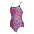 Colourful, bold and sporty, the Girls Zanzibar Sprintback One Piece is sure to make you stand out from the competition. Ideal for squad swimming with its thin straps and high back design, this swimsuit allows you to move freely and comfortably in the water. Made with recycled plastic bottles, this swimsuit is super soft and machine washable!