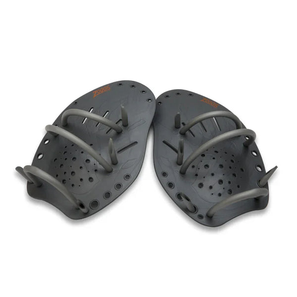 Zoggs Matrix Hand Paddles are designed to improve your stroke technique as they force your hand to stay straight as you pull through the water. They are ergonomically contoured in design for optimum performance and feature a scooped front-end to catch the phase of your stroke with added holes to increase your feel of the water. As well as improving stroke performance, hand paddles can help to build strength in arms and shoulders. The soft TPR (Thermoplastic Rubber) outer edge allows for flexibility in the finger tips for added comfort. If you are considering training with hand paddles for the first time, you should always begin training with a smaller size (i.e. medium) regardless of the size of your hand until you become used to the added drag.