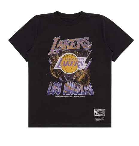 Rock a legendary look with the Mitchell & Ness Los Angeles Lakers Kids Trigon Tee. This street-style essential features bold screen-printed graphics and a custom jocktag that capture authentic NBA heritage. The enzyme-washed overdye creates an effortlessly cool vintage aesthetic, while distressed detailing adds character and edge. Cut for a regular youth fit, it's designed for comfort and style. Simply cold wash and line dry to keep the look fresh.