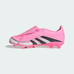Discover the difference between aiming to score and knowing you will with adidas Predator boots that are crafted for goals. These juniors' League boots have a Hybridfeel upper that incorporates an all-over 3D texture, a fold-over tongue and grippy Strikescale fins to help you manipulate the football during strikes. A Controlplate outsole keeps you stable on firm ground and artificial grass.