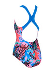 Make a splash in style with Zoggs Sway Flyback. This gorgeous pink and blue under the sea print swimsuit is perfect for any beach or pool day.