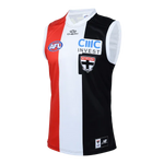 The St Kilda 2025 Mens Home Guernsey celebrates the club's storied heritage with a design that honours tradition while embracing subtle modern touches. Featuring the iconic red, white and black colourway, this guernsey showcases a revised crest elegantly framed in a black box, evoking the classic patch aesthetic of legendary eras. Fresh updates include crisp white collars and cuffs, while the hemline proudly displays "Fortius Quo Fidelius" and "Strength Through Loyalty"—a nod to the Saints' proud legacy. Perfect for supporters who bleed red and white, this is more than just a guernsey; it's a wearable piece of St Kilda history.