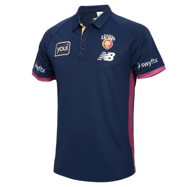 Brisbane Lions 2025 Home Guernsey featuring the Gold Premiers AFL logo. Following 2024's premiership triumph, the Brisbane Lions will have a gold AFL logo on the front of its jumper...