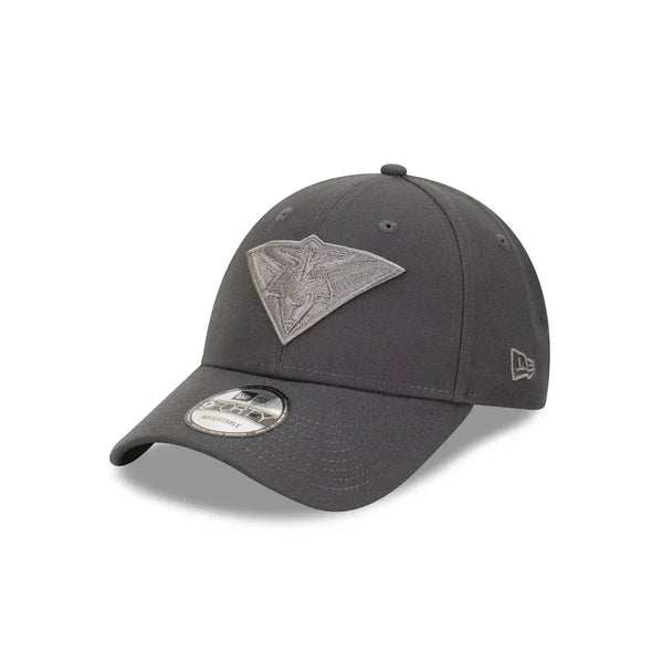 The Essendon Bombers Graphite Grey 9FORTY Cloth Strap features a raised embroidered logo on the Front of a Dark Grey Crown. Additional features include a New Era Flag Logo on the left side.