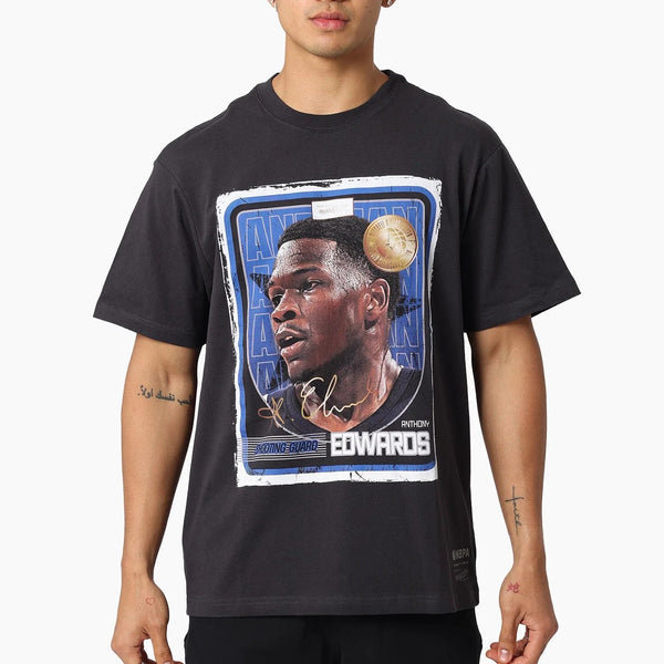 A future icon in the making, the Anthony Edwards Trading Card Tee brings hardwood hype with a vintage edge. Cut in a vintage fit and finished with an enzyme wash for a worn-in feel, it features bold digital print graphics inspired by classic trading cards. Completed with a printed jocktag, this tee delivers next-gen NBA energy with throwback style.