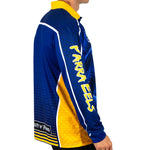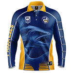 Official NRL Fishing Shirts in a jersey-based design, with strong fishing elements. A menacing looking Barracuda is featured prominently across the front, providing high visual impact and “hang appeal”. A perfect gift for everyone who loves their “Footy & Fishing”