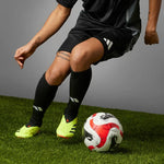 GRIPPY BOOTS FOR ACCURACY IN FRONT OF GOAL, MADE IN PART WITH RECYCLED MATERIALS.