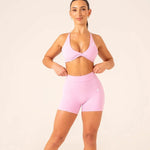 • Foldover waistband that sits high at front and forms a low V-shape at back