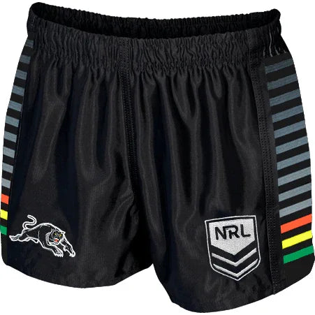 NRL Supporter Shorts - with new NRL logo designs for the season, comes the iconic NRL 'footy shorts' from supporter-wear partner Tidwell. Manufactured in 100% polyester fabric, they are hard-wearing and functional. Featuring embroidered team and NRL logos to the front hems and contrasting sublimated side panels.