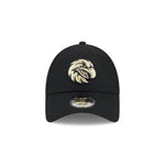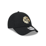 The NRL Supporter Black Gold 9FORTY Snapback features an embroidered raised gold logo on a structured and contoured polyester black crown, a gold NE Flag logo on the left, and an adjustable snapback enclosure.