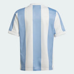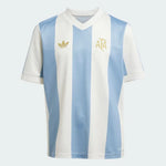 Part of a special kit that marks the 50th anniversary of Argentina and adidas first joining forces. This kids' football jersey rolls back the years with an iconic Trefoil and mid-'70s-inspired team crest standing out in gold colours over those famous stripes. Moisture-managing AEROREADY will keep them focused on the action, while a special sign-off captures the feeling of supporting Argentina.
