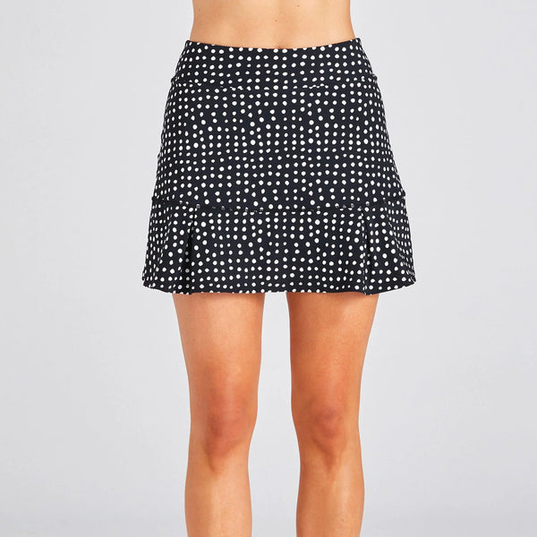 This flattering and functional skort has been created with fitted internal shorts designed with a triangle gusset for superior fit and comfort and silicone stay-in-place tape around the leg. This skort features a tennis ball pocket on one side of the leg and a pocket on the other leg for storing your smartphone, key or cards while on the move. Designed with our limited addition Spotted print, this stylish skort is made from our premium high-performance fabrics and is perfect for your next game or workout.