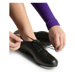 This sleek Oxford style tap shoe is the perfect beginner shoe. The soft PU upper means they're quick and easy to break in, while the non-slip heel counter keeps the shoes in place. The plush lining prevents uncomfortable distractions and the padded heel absorbs shock, making sure that the only thing you have to focus on is making some sweet noise! Featuring our world renowned Tele Tone® taps. You can be sure that although you are just beginning your tap journey, you can take your first steps with confidence.