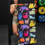 Love cats and need a towel that stays in place during your workout? Our hooded neon cat towel by Teggun Ashleigh has got you covered!