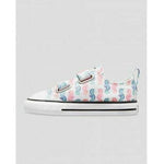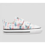The iconic low top gets redesigned for kids, with a cushioned SmartFOAM sockliner, softened stitches and linings, and two hook-and-loop straps for easy on and off. An all-over seahorse graphic in spring-ready pastels brings undersea fun to the surface. The nautical look gets complemented by Chuck Taylor All Star classics, like a woven tongue label, midsole stripes, and a diamond pattern outsole.