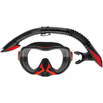 • Blue, Red • Interior purge valve mask for easy clearing • Liquid silicone mask skirt for easy fitting • Dry tip and purge snorkel for snorkelling enjoyment