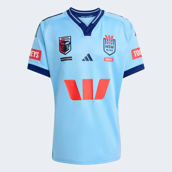 Show you're a true Sky Blue in an adidas jersey clad in the famous colours of New South Wales. Finished with navy blue accents, this is the rugby shirt the players wear at home games. Whether you're lining up on the pitch or cheering from the stands, its soft piqué fabric is both comfortable and resilient. A club crest completes the clean look.