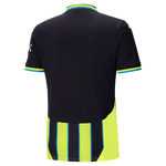 For the 25th anniversary of the historic playoff final – often seen as the turning point in Man City’s fortunes – we’re bringing back the neon yellow and navy striped kit the team wore on that day as a testament to the club and the fans that never give in. Blending style and optimal comfort, the Manchester City Away Jersey is designed with a regular fit and a retro-inspired collar. It includes the PUMA Cat logo embroidered on the chest and both sleeves, along with the iconic Manchester City club crest badge on the chest. We commemorate the thrilling victory on May 30, 1999, by printing the date on the inside of the neckline. Engineered with dryCELL sweat-control technology, this jersey ensures you stay cool and comfortable. Designed for the fans, Replica jersey pairs the same match-worn look with a casual silhouette, details, and materials, ideal for both game day and everyday wear.