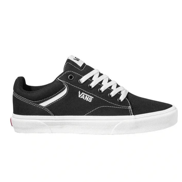 The Seldan trainers from Vans is a low top, lace-up shoe with a padded tongue and a collar for added comfort. The look is finished with the brands logo on the side and tongue for brand recognition.