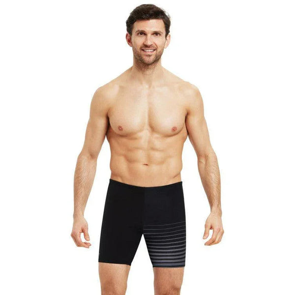 A new seasonal essential style for Zoggs, the Mens Eden Mid Jammer, is a classic Black Jammer with a twist. Featuring stylish and strong tonal grey stripes this 39cm Mid Jammer is ideal for squad swimming or anyone active in the pool. Featuring our Chorine proof, eco friendly Ecolast+™ fabrication, this Mid Jammer will last the distance.