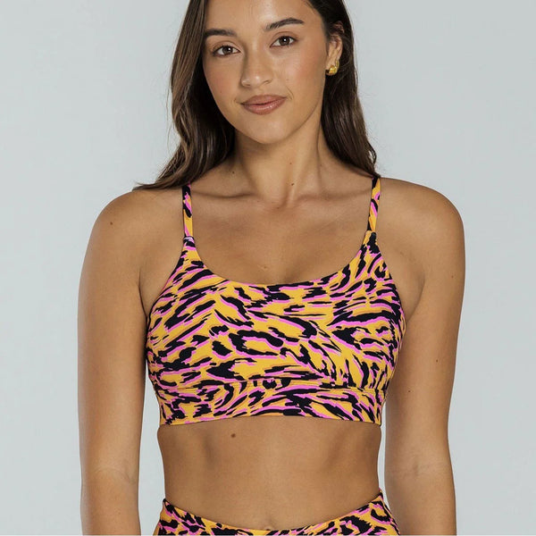 Introducing the Run Swim Active Noah Wrap Back Crop available in our limited edition Savage Soul print. Made in our Chlorine Resistant Run Swim performance fabric, this crop features a twist back design, narrow crossover straps and removable cups.
