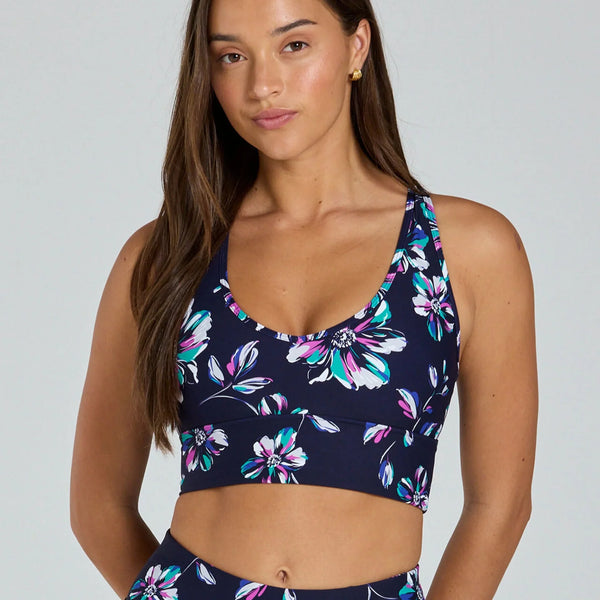 Beat your personal best in our stunning Petal Pop V-Neck Crop Top/Sports Bra. Made with our 'Embody Active' Performance fabric, this crop features removable cups and provides medium support.