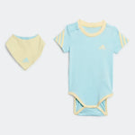 Start your little athlete off in style in this infants' onesie. The ultra-soft organic cotton surrounds them in comfort as they perfect their Happy Baby pose or crawl around searching for a favourite toy. A matching bib with a snap closure helps keep food off their gear. This onesie is made with natural and renewable materials as part of our journey to design out finite resources and help end plastic waste.