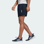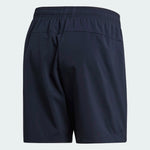 5in woven short with shaped side seams and back yoke; side pockets; elasticated waistband with inner drawcords; Regular Fit