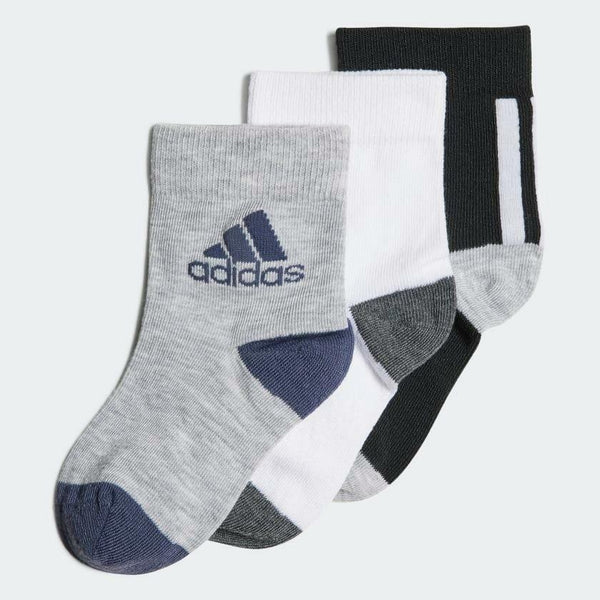 Whether your kid is sliding into home base outside or across your kitchen floor inside, these adidas ankle-length socks wrap little feet in cushioned softness. The three-pack lets kids get grape juice or grass stains on two pairs and still have another clean team standing by. Made with a series of recycled materials, and at least 60% recycled content, this product represents just one of our solutions to help end plastic waste.