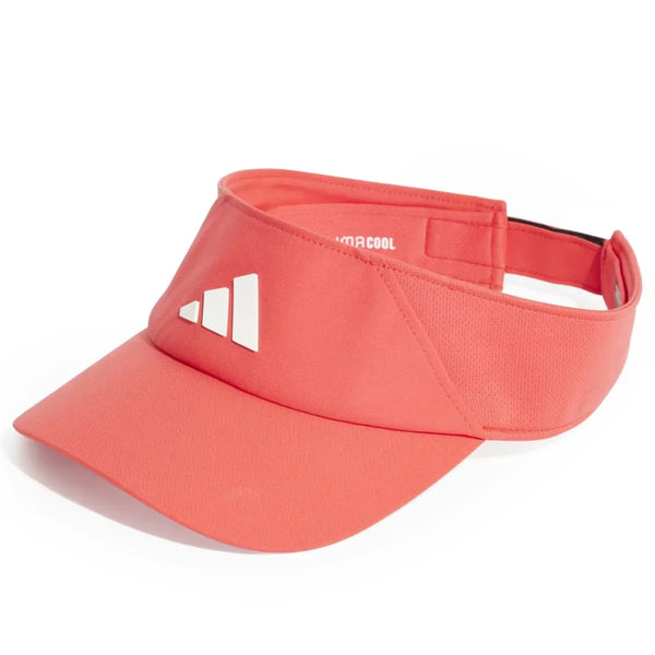 Push the pace on sunny days in this adidas visor. A pre-curved brim shields your eyes from the glare. The hook-and-loop back strap lets you adjust for the perfect fit. CLIMACOOL wicks and disperses sweat for cool, dry and distraction-free performance.