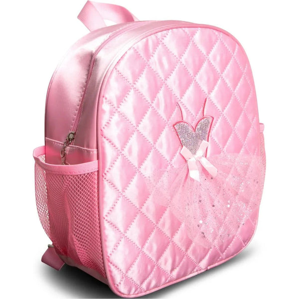 The Tutu Sequin Backpack boasts a beautiful 3-D sequined tulle tutu that is sure to stand out. The adjustable shoulder straps provide a customized fit for every little dancer. Large inner pocket and two outer mesh pockets perfect for water bottles and other accessories. Metal ballerina zipper pull adds a perfect subtle detail.
