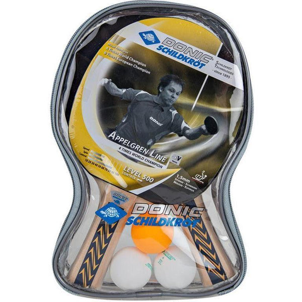 Schildkrot Appelgren 500 player set is a high grade recreational bat and ball set . Schildkrot Appelgren 500 bat is a ITTF approved bat and features, 5V Vario blade, 1.5mm sponge, Elite rubbers and a Concave handle. The set also includes 3 balls from our Elite ball range.