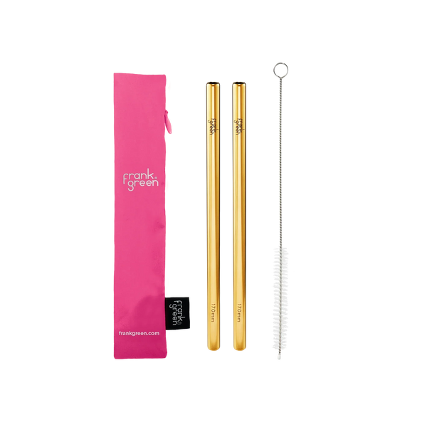 Say goodbye to flimsy and wasteful plastic straws forever. Made from premium, food-grade 304 stainless steel, the two frank green reusable straws are 8mm wide (perfect for smoothies!), dishwasher safe and easy to clean thanks to the handy straw cleaner. They come in a recycled ECORPET® pouch and the straws can be used with frank green straw lids, or on their own.