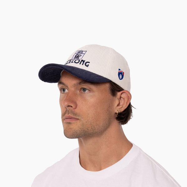 This throwback corduroy cap styled for Geelong Cats fans blends vintage style with everyday comfort. With its classic embroidered logo and soft corduroy texture, it’s perfect for game days or casual wear.