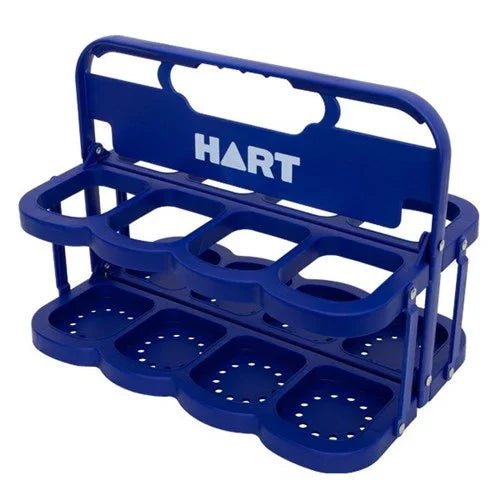 The HART Easy Store Bottle Carrier is a durable moulded plastic bottle carrier that folds down flat for easy storage and carrying when not in use.