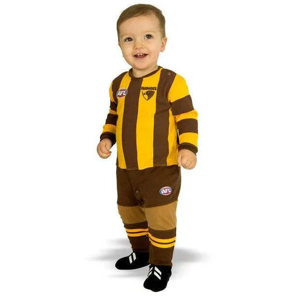 A Footysuit is a 100% cotton, all-in-one, baby jumpsuit that is designed to depict the complete outfit of your favourite hero. We use  a mid-range skin-toned fabric on the leg to give the appearance of socks and shorts; it is a colour that looks good on babies with both darker and lighter skin. Features include:
