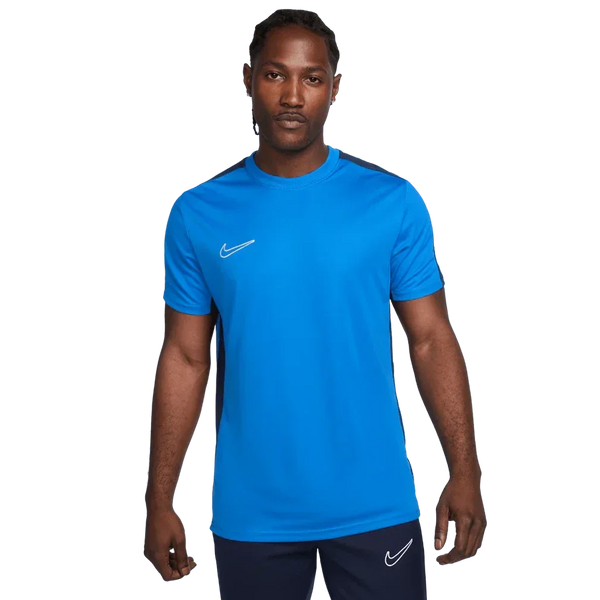 The Nike men's T-shirt combines a combination of numerous features that will help increase the effectiveness of training outdoors or in a sports hall.Light material supported by Dri-FIT technology wicks moisture from the surface of the skin to outer layers of the fabric, allowing it to evaporate quickly, keeping you feeling dry and comfortable.The standard cut T-shirt provides full freedom of movement and mobility.Mesh panels sewn in on the sides and back increase free air flow to maintain even greater freshness on the pitch.The blue design with contrasting inserts is a functional complement to the sports styling.The Nike men's T-shirt will allow you to maintain a high level of comfort at every stage