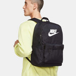 Take your gear to go with the Nike Heritage Backpack. Its spacious main compartment features a sleeve that holds up to a 15" laptop, so your computer is never out of reach. 2 zipped accessories pockets help keep your gear organised and easy to grab. This product is made from at least 65% recycled polyester fibres.