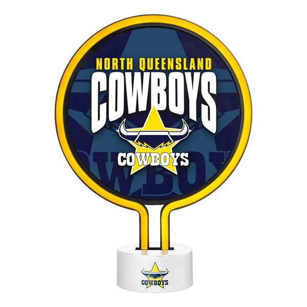 - Neon Light with team logo - Light: 21 x 26.5 x 1.6cm | Base: 8.5 x 4cm - Assembled Size: 30 x 21.5 x 8.5cm - Requires 3 x AAA Batteries (Not included) - Official NRL Merchandise