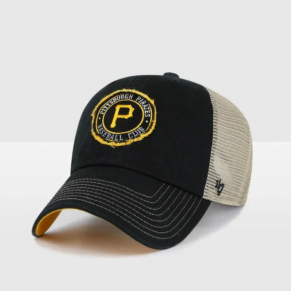 Cheer on the Pittsburgh Pirates with this Garland 47 CLEAN UP Cap! This ’47 Clean Up Cap is a relaxed style garment made from a cotton twill fabric for maximum comfort. This cap has a structured crown, a semi-curved brim, and a breathable mesh back, as well as a raised embroidery logo on the front.