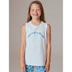 Let her shine in the Girls Replay Muscle Tank! Crafted from 100% breathable combed cotton jersey, this activewear staple features a super cute tennis club print. It’s perfect for summer and will quickly become her favorite tee. Pair it with bike tights or leggings for dance class or weekend fun.