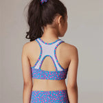Complete your hand stand look with the "next gen" sports bra. Made from super soft supplex luxe fabric with a breathable mesh back. This is your girls perfect crop top for her weekend sports sessions or playdates. For a top to toe look pair back with the matching bike tight.