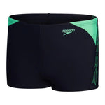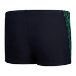 Iconic Speedo style. Sharing the same great fit as our Classics range, this sleek navy Splice Aquashort features a green Boom logo stripe along the leg and hip. Lined with a modesty panel at the front, it includes an internal drawcord to allow young swimmers to adjust the fit. A great choice for frequent swim sessions, the EnduraFlex fabric offers higher chlorine resistance than standard swimwear fabrics and fits like new for longer with CREORA® HighClo™. In addition, nylon yarns in the EnduraFlex fabric are made from 100% pre-consumer waste, such as waste fabric from factories.
