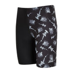 Take your junior boys swim game to the next level with Zoggs Aquaray Mid Jammer, featuring a fish and ray skeleton design.