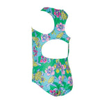 Turtley awesome! The Zoggs Turtles Actionback features turtles an flowers on a stunning green and blue base.
